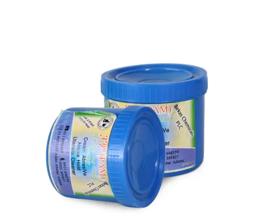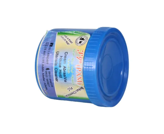 The cream-type abrasive detergent is used for cleaning adherence of food, rust, smoke, and others from kitchen utensils.
